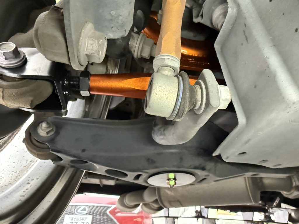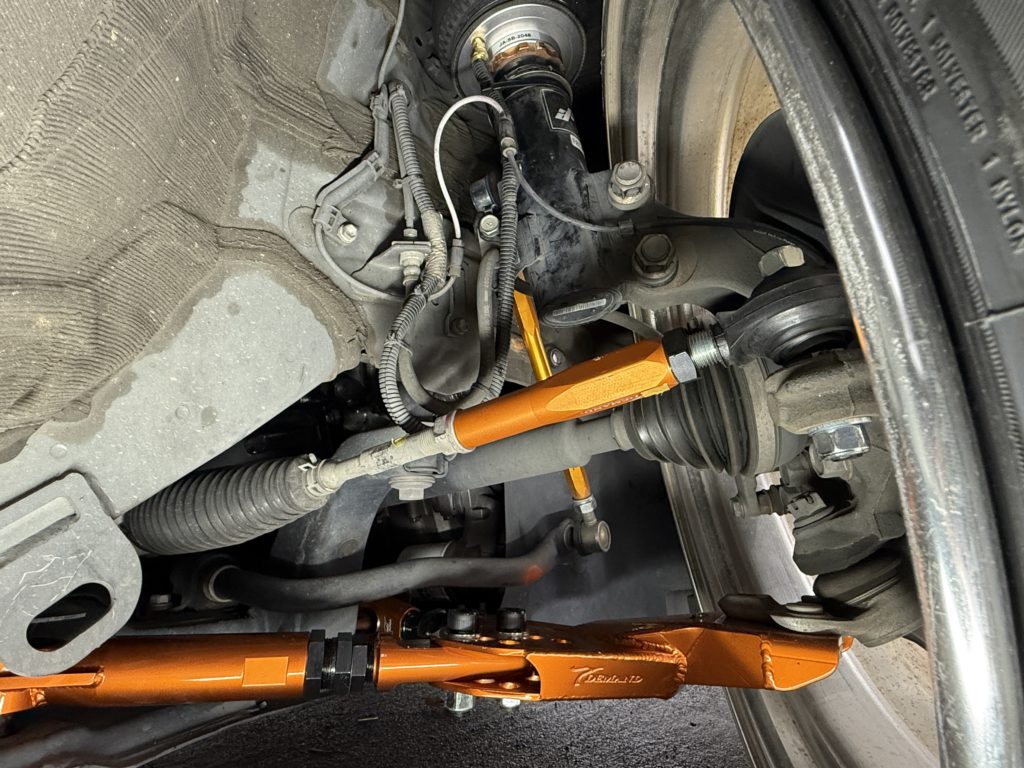 カスタムはT-DEMANDフロントロアアーム、タイロッドエンド、リアアッパーアーム、トーコンアームを導入してほぼフルアームです。